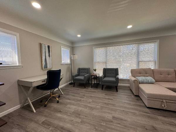 Totally renovated and fully furnished upper flat unit featuring 2 bedrooms and 1 bathroom. Highlights include a brand-new kitchen and bathroom, a formal dining room, and all new appliances. Enjoy central air conditioning, and flat-screen TVs in each bedroom and the spacious living room. The basement offers a shared laundry area and a game room. Detached garage parking and a fenced backyard add convenience and privacy. Ideally located close to Corewell Health (formerly Beaumont Hospital) and vibrant Downtown Royal Oak.