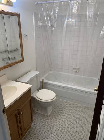 Apartment 107 has all-new flooring and paint throughout, plus custom-made vertical vinyl blinds.
