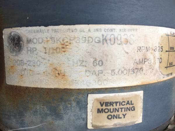 Central air conditioner fan motor with blades. Works fine. Came off a 20+ year old ac when the furnace & air were replaced. Includes fan blades, wiring, nuts on mounting bolts. Sorry no capacitor.
