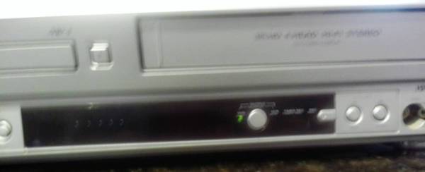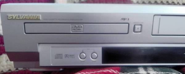 White-tan color is a Sylvania CD/DVD player with VHS player with remote