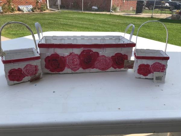 Set of 3 baskets with orange decals $20 Set of 3 baskets with lime decals $20 Set of 3 baskets with flowers $20