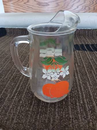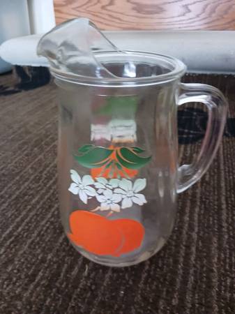 Vintage 7" Glass Orange Juice Pitcher. Good condition. pick up in New Baltimore or Aramada Flea Market / Sunday mornings..