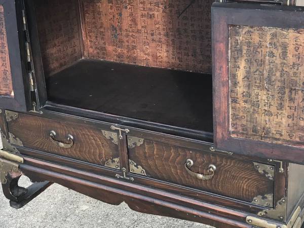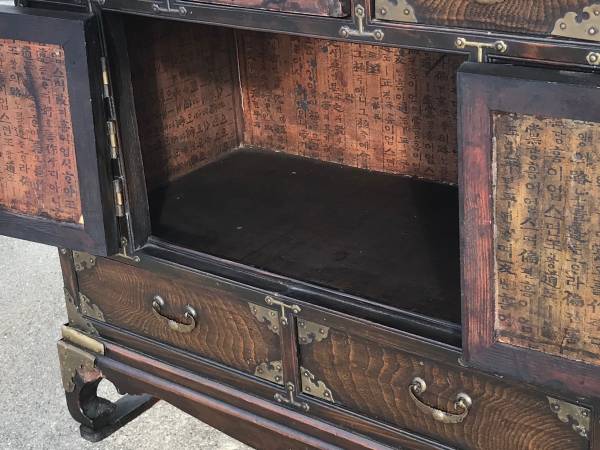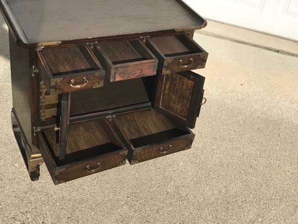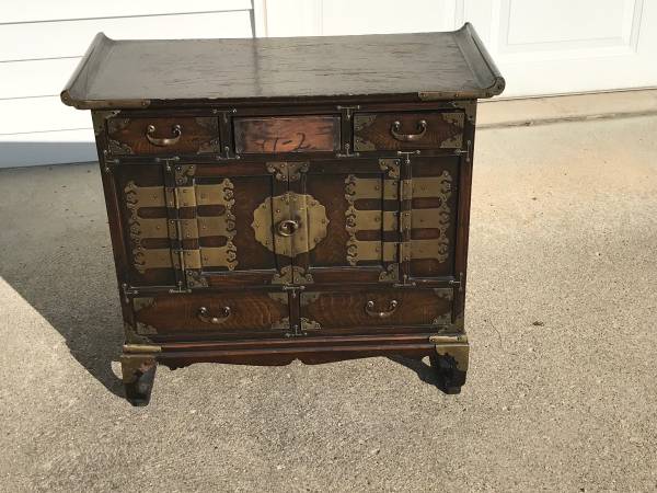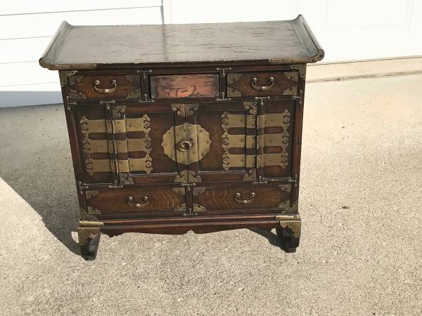 Antique Korean / Japenese Wood Chest / Cabinet , 24 " H x 26.5 " W x 11.5 " D. ALL WOOD , 5 Drawers - 2 Doors , Shows Wear . If Interested CALL ONLY - 586 56 seven -2000 ... Price is FIRM