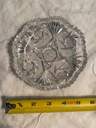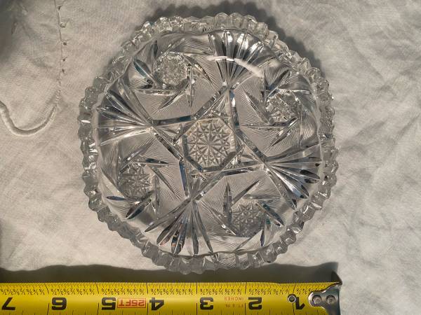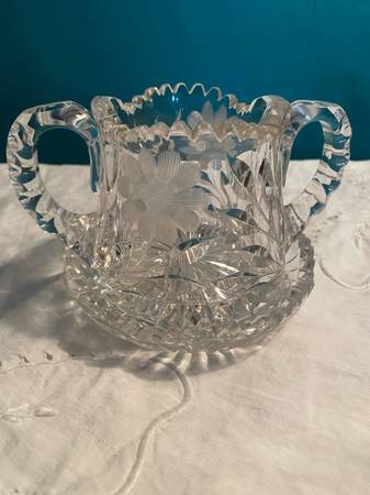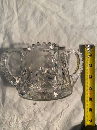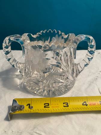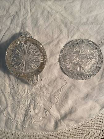 Vintage Floral Pattern Cut Etched Crystal Sugar Bowl and Candy Dish Set $20