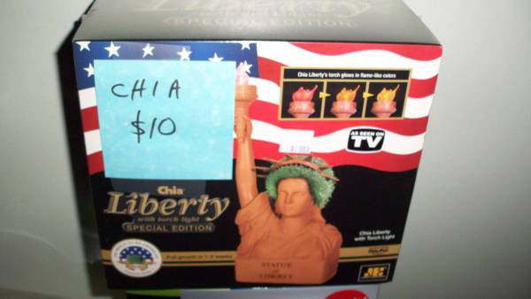Chia Pet "Liberty" with Lighting Torch --New in Box-Half Price-- $10 each LAST ONE! I have one "Liberty" left with a lighting torch $10 each LAST ONE! Don't spend $19.99 at the store (plus tax)!...