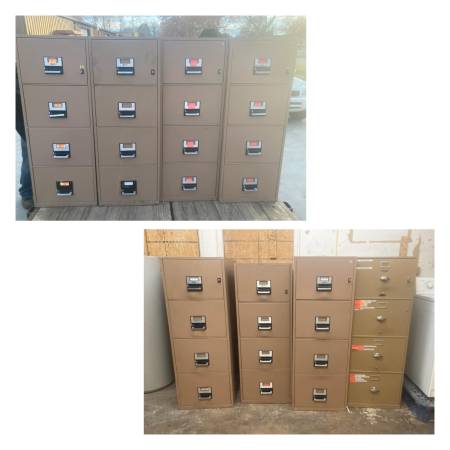 Around 300 lbs One left in black Measures 43" wide x 20" deep x 41" high Have 31 uprite 4 drawer available $500 each