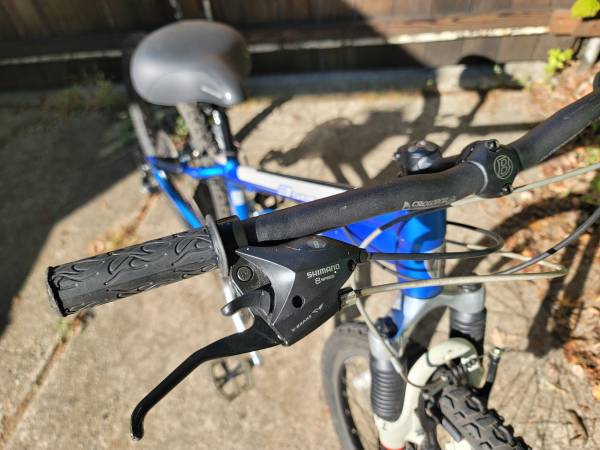 Great condition, works perfect, very light aluminum frame, high-end parts, Acera shifters, Tektro brakes, Bontrager wheels. Has 3x8 speeds, regular 26'' wheels, frame is so low(13'') a 4th grade kid can ride it with seat down and also me as adult i can use it since seat goes up a lot.