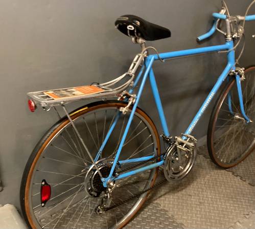ALL ORIGINAL LIKE NEW Chicago built Larger size frame. Decades of inside storage Low miles.No rust.Beautiful paint , chrome and decals.bearings cleaned and regreased..10 speed .27” wheels.Newer schwinn tourer tires and tubes.Frame size 24” 33“ stand over. Good for riders 5. 7” to 6.2” tall.Schwinn accessory rear rack.Original owners manual .
