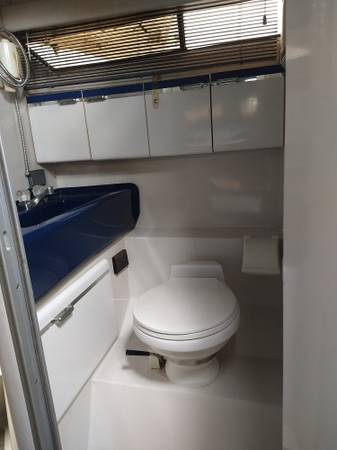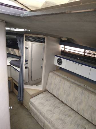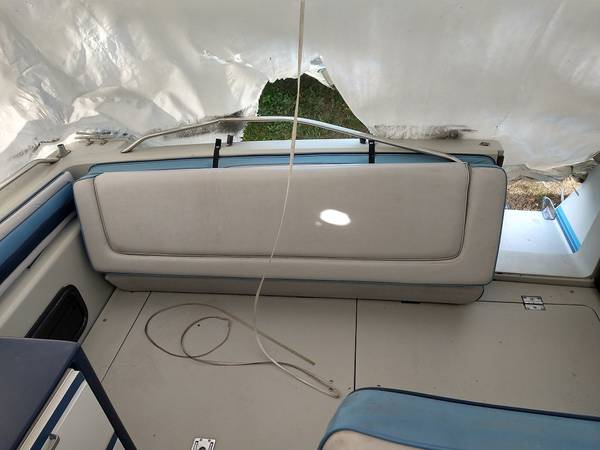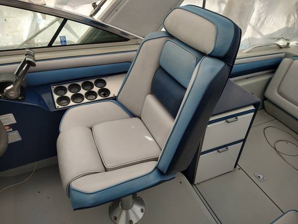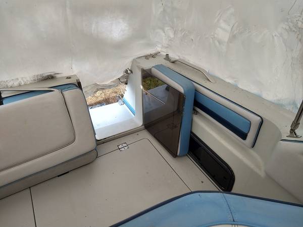 Nice cockpit upholstery. Folding rear seat. Transom door.