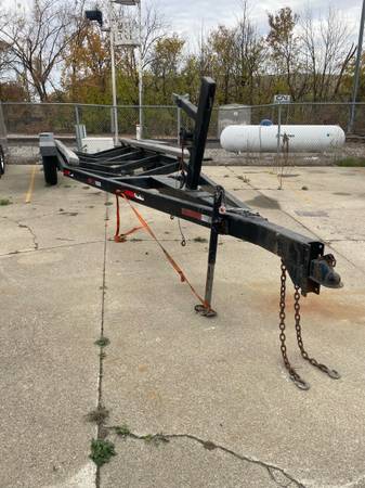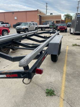 This is a large boat trailer, steel construction. Box style with two 7000 pound eight lug axles with adjustable front ring mount hold up to 34 foot boat depending on the boat also has adjustable...