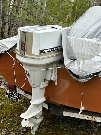 Nice 18' Fiberglass with 55hp Chrysler Motor included. Garage Stored for 30+ years... Boat and Trailer sold together. Needs some gentle TLC.. A Real Fun Lake running around Boat.. Great Boat for Cruising or to water ski or pulling a tube or for Fishing.. If interested call or text Joe at show contact info