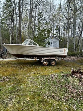 Beautiful Wooden Cruiser Inc Commandeer.. 18 foot... Been Garage Stored for over 40+ years.. On Trailer.. No Motor.. Needs some TLC... Only a Few left like this One. Boat and Trailer sold together... Great Cruising Boat for the Person who wants a Wooden Boat for the Water.... If Interested call or text Joe at show contact info