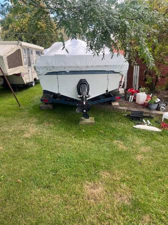 cuddy cabin.. 4.3 liter v6... motor good ..power steering works when it wants.. omc cobra outdrive (great).. total rebuild by mich marine gear..,, 20 hours more or less since rebuild,, boat itself can use some tlc.. bill of sale for trailer.. picture coming soon,, will send pic by text in the mean time.. will be donated to the spca if not sold..