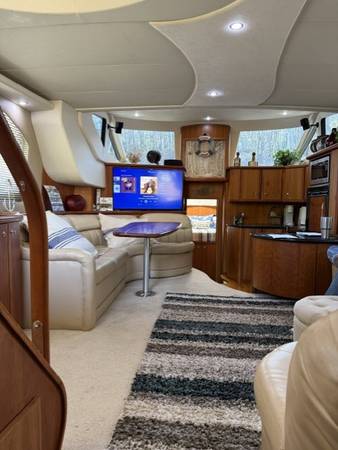 Loaded with upgrades, exceptionally clean, and fully turn-key for the 2025 season! This 2002 Silverton 43 is a rare find — meticulously maintained and packed with high-end features. Powered by twin Crusader 8.1L MEFI engines (435 HP each) and supported by a Kohler 10E-QSI gas generator, this yacht is ready for everything from day cruising to extended getaways. Comfort & Layout Highlights: 2 Spacious Staterooms, 2 Full Baths, Expansive Salon and Galley, Open Cockpit & Patio Area – ideal for entertaining, Recent Maintenance & Mechanical Upgrades: Full bottom job with new anodes, Entire boat buffed and waxed, Trim tabs upgraded to Bennett Auto Trim Control System (NMEA integrated), Installed twin thru-hull sonar sensors for enhanced RealVision Fishfinder performance, Electronics & Navigation: RayMarine Axiom+ 12RV MFD w/ Navionics+, RayMarine i50 Display, RAY53 VHF, RS150 GPS Sensor, FLIR M232 Thermal Camera (forward) + CAM300 Rear IP Cam, RayMarine RNS-5 Gigabit Switch & RayNet cables, NMEA 2000 Network + Fox Marine Engine Gateway Modules, Entertainment System: Fusion MS-RA770 Apollo Touchscreen Marine Stereo (4 Zones + SiriusXM), JL Audio Subwoofer, Amp, Flybridge & Bow Speakers, Fusion MS-RA210 Stereo in Forward Cabin, 50" FireTV 4K Flatscreen, Sony Surround System w/ Bluetooth & 4K Blu-ray Player, Digital Yachts DTV100 Marine HDTV/FM Antenna. Everything onboard is fully operational and ready for the season. Must see to appreciate the care and love this yacht has received. Schedule your private showing today, this one won’t last long! Call Jerry Cookson at Cedar Port Marina. Transportation can be arranged.