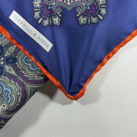 Luxury Turnbull & Asser silk square. Key Details: - Turnbull & Asser - 100% silk - Hand-printed - Size: 18 x 18 inches - Condition: Excellent - Smoke-free home Pickup Details: - Local pickup...