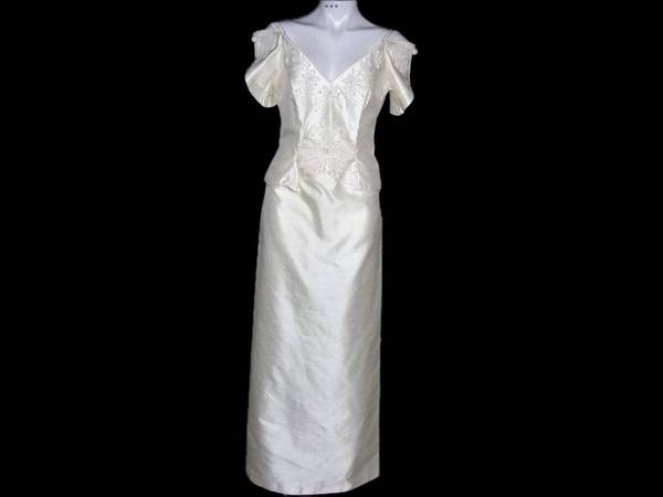 Some are Displays that were in a Closed Vintage Store. If displayed in store-a mannequin wore. Please note they will be wrinkled due to being stored in a box. again this whole lot is gorgeous!! Even new out of packaging gowns can have loose or missing beads, same here-there could be, again this is a vintage lot, although New stock could have been tried on by customers. Sometimes when displayed, it could have been altered due to limited space, and some could have been bustled, again because of limited space.