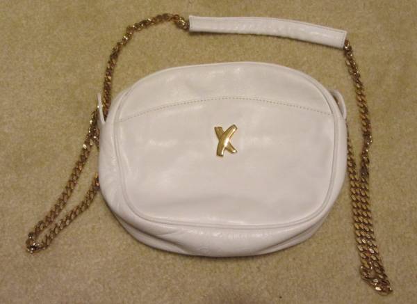 PALOMA PICASSO White Evening Bag With Gold Tone Chain 8 inches long by 6 1/2 inch high by 20 inch length Gold Tone Chain