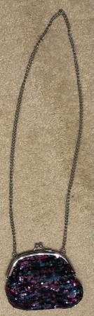 Place 89 Small Sequins Bag - Black/Purple/Blue Silver Chain Strap...