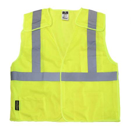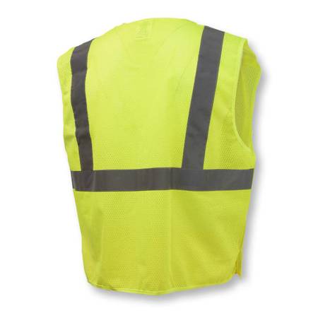 Radians SV4 economy breakaway safety vest has hook and loop fasteners at shoulders, sides, and a front closure that will breakaway when tugged with moderate force. The breakaway feature allows the worker to quickly shed the vest if it becomes entangled in moving machinery or caught on equipment. Rated ANSI/ISEA 107 Type R Class 2