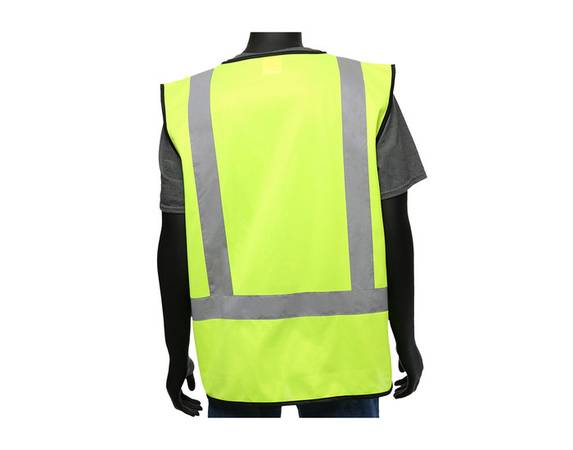 Features black color block on bottom of vest to keep dirt, grime, and stains hidden; Certified to test standards ANSI Class II Type R for workers with specific safety requirements, ensuring complete visibility