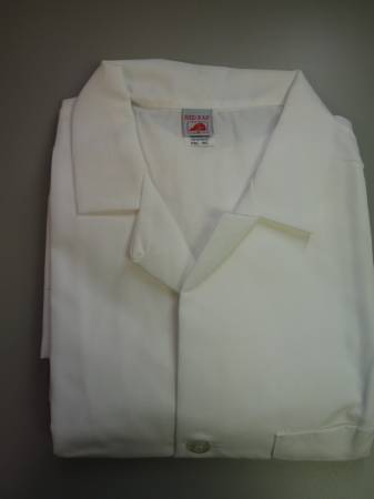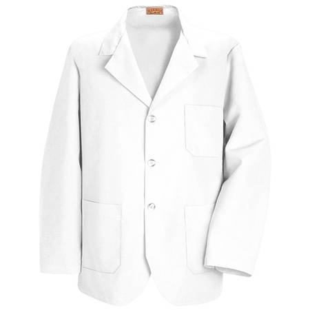 At Cost Closeout Sale! Quantity of 4 - Red Kap KP30 - White, Lapel Counter / Lab Coat / Shop Coat 2XL Blend: 80% Polyester / 20% Combed Cotton Care: Industrial Wash, Light Soil, or Home Wash...