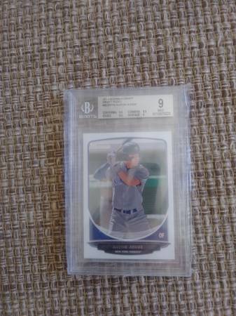 2013 Aaron Judge Bowman Paper Rookie Baseball Card, graded by Beckett Grading Service (BGS), as a Mint 9. Very nice baseball rookie card of the New York .Yankee future Hall of Famer! If interested,...