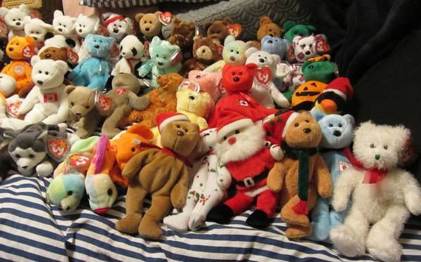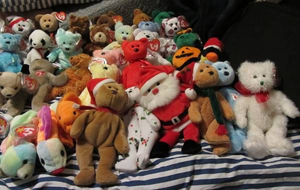 72 Beanie Babies - Come from a smoke free home. 1997 TEDDY BEAR PVC PELLETS $10 1998 HOLIDAY TEDDY BEAR - P.E. PELLETS $10 1998 HOLIDAY TEDDY BEAR - P.E. PELLETS $10 1999 HOLIDAY TEDDY BEAR - P.E....