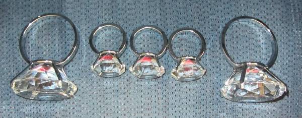 2 Large and 3 Small Glass Metal Novelty Engagement "Diamond" Rings...