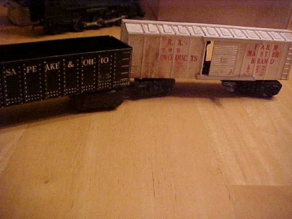 Many of the 'cars' have advertising on them such as: Baby Ruth...Shell....Lionel ATT Lines.....New York Central...... Just to name a few. All cars are in very good condition, considering their age. The heavy MARX locomotive has the numbers 333 embedded on the front top of that engine. ***The MARX engine works.