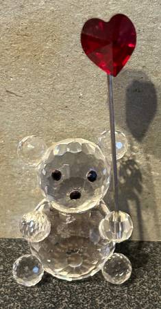 Small Crystal Teddy Bear Holding Heart Balloon Figurine: Measures: 2 inches high by .75 inches wide