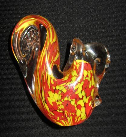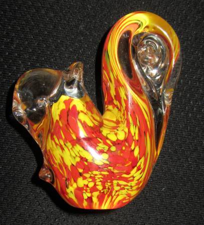 Squirrel Figurine Confetti Art glass Yellow/Orange Paperweight Sun-catcher Approximate Size: 3 inches tall.