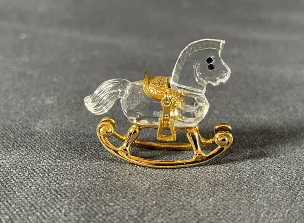 Swarovski Crystal Memories Rocking Horse 18K Gold Plated 199447 Miniature This Swarovski Crystal Memories figurine features a small clear crystal rocking horse with 18K gold plating. The miniature...