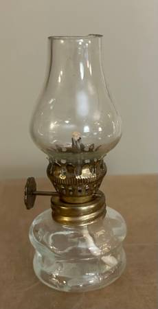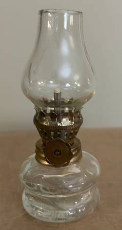 This Vintage Miniature/Small Clear Glass Oil Lamp adds a touch of Victorian style to any room. Measures: 4 inches tall
