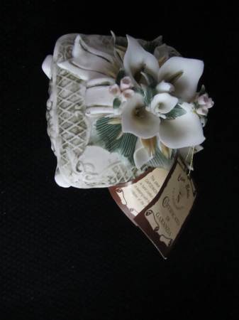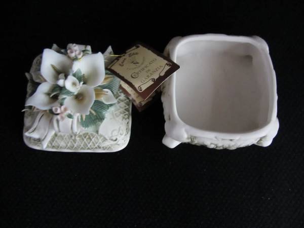 Vintage Casa Elite N.T. Capodimonte Pocerlain Square 3D Floral LId Trinket Box, Italy Measures: 3 1/2 inches wide by 4 inches tall