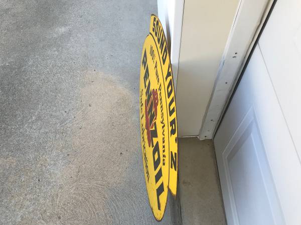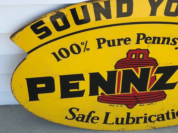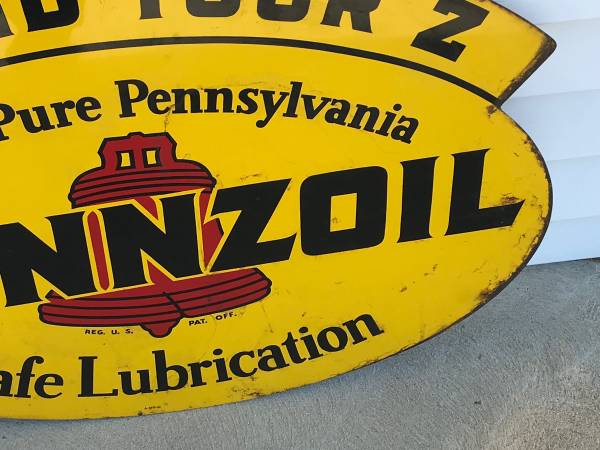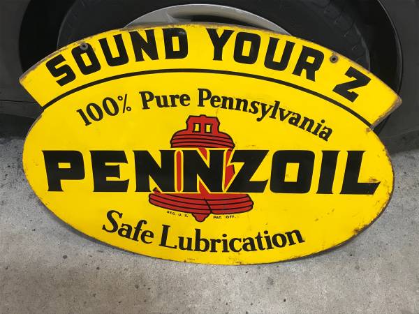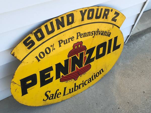 1950s Pennzoil Motor Oil [ A-M 6-56 ] Gas Station Double Sided 31” x 22” Metal Sign . No Dents , Still Has Great Color - Some Rust on Outer Edges . THIS IS NOT A REPRODUCTION ... Price is Firm -...