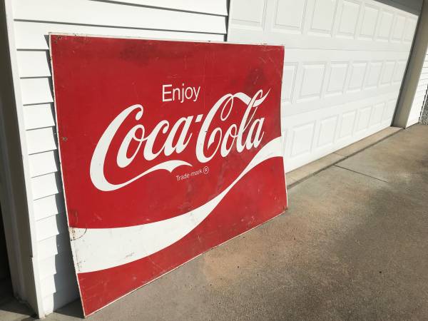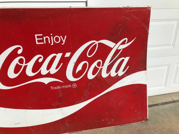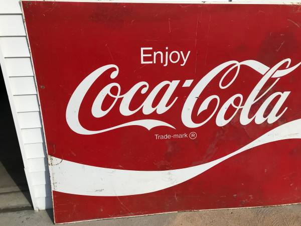 Vintage Coca Cola Metal Sign [ M29 ] 68" W x 51 1/2 " H .Will Full Up a Wall . Some Dents & Dings - Needs Cleaning . Call - 586 56 SEVEN -2000 ... Price is Firm