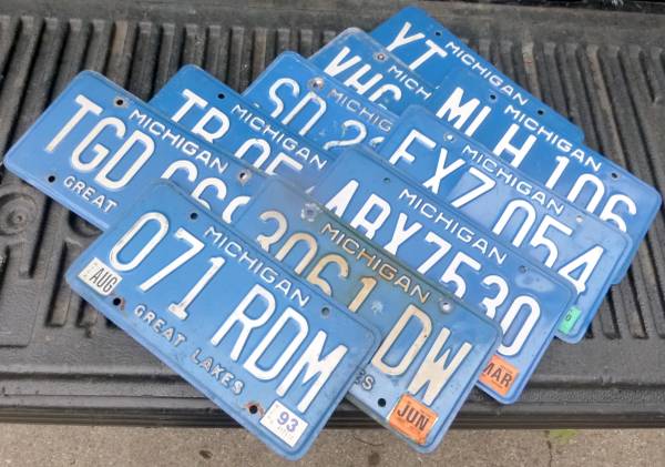 Michigan License Plates 12 - Blue Great Lakes Automotive Car Plates 4 - Blue Great Lakes For Trailers Price is for each plate . Buy one or buy them all. Condition: Previously Owned Most are in great...