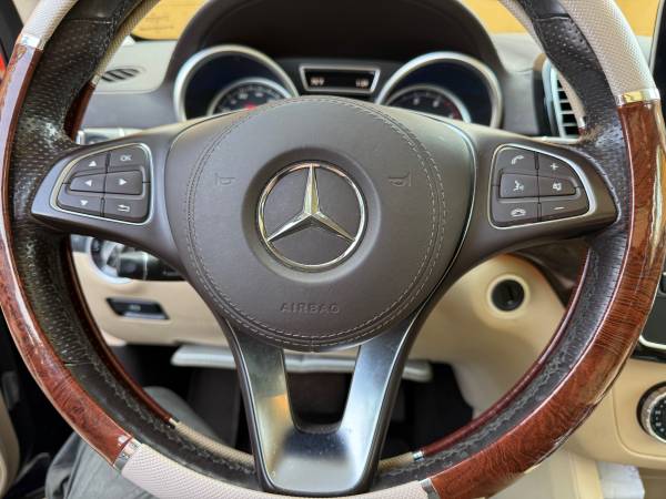 We have for sale a 2017 Mercedes Benz GLS 450, It is a navy blue color with tan leather interior. It runs and drives great and needs nothing done to it. It has some great options such as heated seats, heated steering wheel, panoramic sunroof, navigation, blindspot alert, 360 Camera view, memory seats, and more! Vehicle is listed at a lower price because of a accident it had to the front end, it has been fully repaired with no issues and stayed a Green/Clean title.