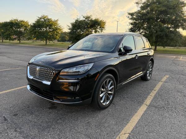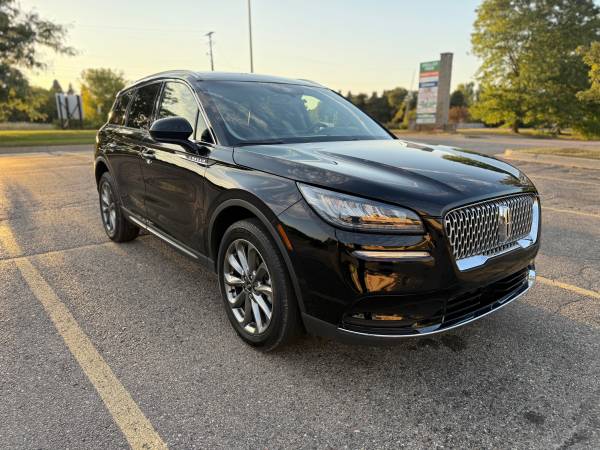 We have a 2022 Lincoln Corsair for sale, It is a black color with black leather interior. It runs and drives great and needs nothing done to it. It has some great options such as heated front seats, heated rear seats, cooled front seats, heated steering wheel, remote start, power liftgate, blindspot alert, memory seats, back up camera, Navigation, Panoramic sunroof, Bluetooth, Apple carplay, Android auto and more! It is listed at a lower price because of accident it had to the right rear, It has been fully repaired and stayed a Clean/Green title.
