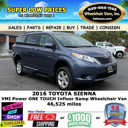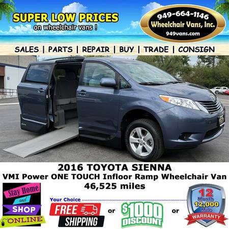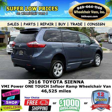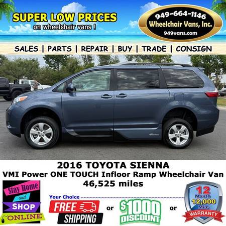 2016 Toyota Sienna Wheelchair Van Minivan Exterior Color: Shoreline Blue Pearl Interior Color: Ash Engine: 3.5L V6 266hp 245ft. lbs. Fuel: Gasoline Transmission: Automatic Drivetrain: Front Wheel...