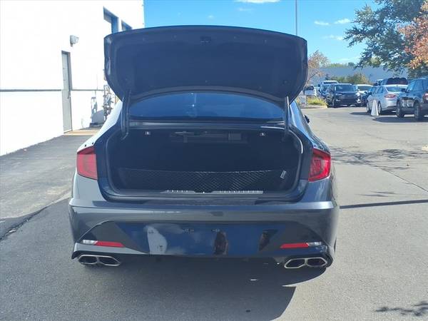 Black Leather, 12 Speakers, 4-Wheel Disc Brakes, ABS brakes, Air Conditioning, Alloy wheels, AM/FM radio: SiriusXM, Apple CarPlay & Android Auto, Auto High-beam Headlights, Auto-dimming Rear-View mirror, Automatic temperature control, Bose Premium Audio, Brake assist, Bumpers: body-color, Cargo Hook, Cargo Net, Cargo Package, Carpeted Floor Mats, Delay-off headlights, Driver door bin, Driver vanity mirror, Dual front impact airbags, Dual front side impact airbags, Electronic Stability Control, Emergency communication system: Blue Link Connected Car Service (3-year complimentary subscription), Exterior Parking Camera Rear, Four wheel independent suspension, Front anti-roll bar, Front Bucket Seats, Front Center Armrest, Front dual zone A/C, Front reading lights, Fully automatic headlights, Garage door transmitter: HomeLink, Heated door mirrors, Heated front seats, Heated N Unique Sport Seats, Illuminated entry, Knee airbag, Low tire pressure warning, Nappa Leather/Dinamica Seating Surfaces, Navigation System, Occupant sensing airbag, Option Group 01, Outside temperature display, Overhead airbag, Overhead console, Panic alarm, Passenger door bin, Passenger vanity mirror, Power door mirrors, Power driver seat, Power moonroof, Power steering, Power windows, Radio data system, Radio: AM/FM/MP3/HD/SiriusXM Display Audio w/Nav, Rear anti-roll bar, Rear seat center armrest, Rear side impact airbag, Rear window defroster, Remote keyless entry, Reversible Cargo Tray, Security system, Speed control, Speed-sensing steering, Speed-Sensitive Wipers, Split folding rear seat, Spoiler, Steering wheel mounted audio controls, Tachometer, Telescoping steering wheel, Tilt steering wheel, Traction control, Trip computer, Turn signal indicator mirrors, Variably intermittent wipers, Wheels: N Unique 19 Alloy, Wireless Device Charging, Black Leather.
