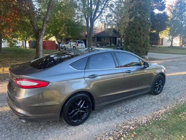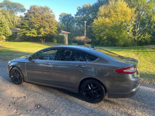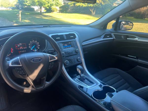2015 Ford Fusion SE. It runs and drives excellent. One owner vehicle very well maintained. Non smoker. Garage kept. Super clean inside and out. Brand new Michelin all season tires and new brakes and rotors, new battery, new suspension, full synthetic oil changes every 3000 miles. Very dependable vehicle and great on gas. It has only 83k miles on the 2.0 liter 4 cylinder engine and automatic transmission, body has 200k.Bluetooth, heated and cooled seats, xm radio, and much more. I have both sets of keys included with a Clean Green Michigan Title. Serious buyers only.