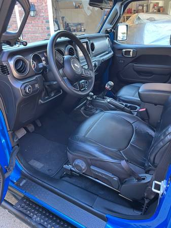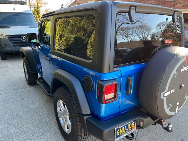 2023 Jeep Wrangler Sport S two door. Only 557 miles. Hydro blue, black interior, 3.6L Pentastar V6, 6 speed manual transmission. Convenience group, Cold weather group, Alpine premium sound package, hardtop with Freedom panels, Besttop premium cloth Sunrider panel, Quadratech side steps, hood struts, Quadratech LED headlamps and fog lamps, premium seat covers. Kept in the garage under a cover craft cover. Always on a battery tender. Summer vehicle. Never driven in snow. Ordered new from dealer. Not a lot car. Basically a brand new Jeep. Call Joe- show contact info