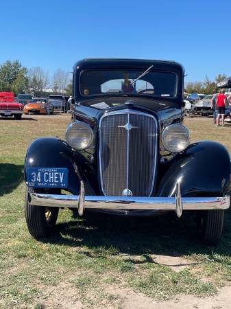 1934 Chevrolet 2 door Standard All Original inline 6 and. 3 speed manual on the floor. exterior and interior. Great paint job in 1989 still in great shape no rust anywhere. Drove it to the Autorama in February received a 2 place placket. Drove it to Woodward Dream cruise August 2025.