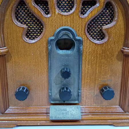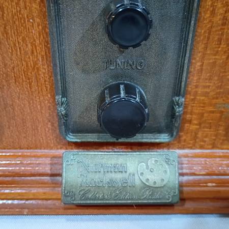 The radio powers on and works; tuning a station can be a little sensitive, but once dialed in, it plays fine. Cassette player is untested, but the original seller stated it was tested. Wood cabinet has normal wear for its age with no major damage.