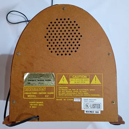 Selling a Thomas Collector’s Edition Tombstone Radio, Model 217 (America Series Radio No. 0846). This is a 1988 reproduction, not an original 1920s–1950s radio. Made in China. Features AM/FM radio and a cassette deck.