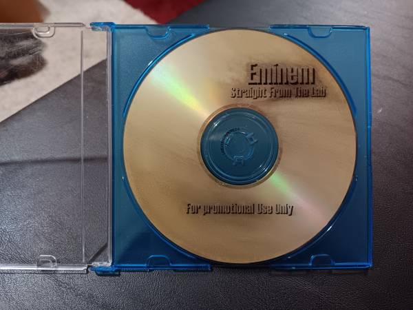 Selling a CD Eminem Straight From The Lab. For Promotional Use Only. RARE. Originally made in 2003. High quality bootleg that was leaked and produced by Nate Mathers, Eminems brother. Unofficial release that leaked material that was supposed to be used on the album Encore in 2004. An important piece of Eminems discography. This particular bootleg CD as well as the Vinyl release are the closest to an official release that will ever exist. Very rare and hard to find. I haven't seen another for sale. Overall excellent condition. Please see all pictures. Tested and plays perfectly. Asking $100. Personal pick up. Feel free to email me with any further questions and check out my other music listings. Thank you