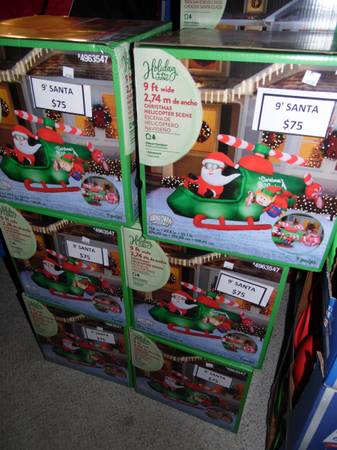 9' Animated Santa in Helicopter Inflatable --New in Box-Half Price-- These Helicopters are 9' long and have moving propellers. $75 each – 3 available Warren Residence near 10 Mile and Mound Christmas