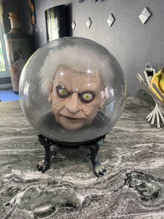 Talks and moves when motion is sensed. Has several different sayings. Great for halloween.