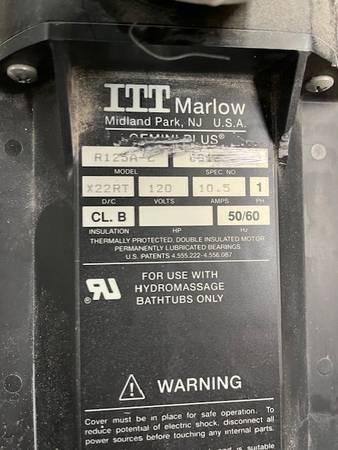 For Sale ITT Marlow Jacuzzi pump Air switch is working, HP unknown as is condition $35 OBO reply thru Craigslist Email or Chat